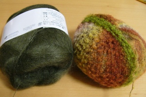 正月にマスザキヤさんで買ったパピーのキエーティ(色番603)に、値上が前にハセガワさんで買ったセイカ12(色番14 リザード)を合わせて、シンプルなプルを編む予定です。