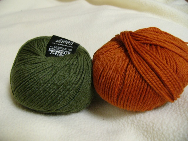 タスマニアンメリノ(深緑)とプリンセスアニー(色番542オレンジ)これです
