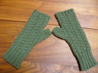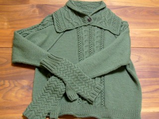 去年編んだセーターと、ネックウォーマーと、指無しミトンのタスマニアンメリノのアラン3点セットv