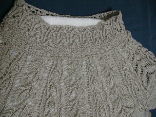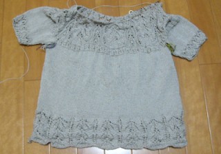 「クチュール・ニット春夏」14丸ヨークの半袖プルオーバー、ヨークの模様編みここまで出来ました!
