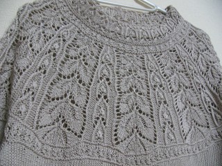 あとは引き続きリーフ模様を22段、そして、衿を26段編んだら終わり!